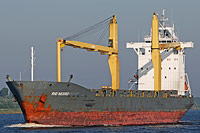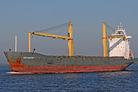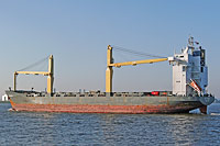 6. Schiff einer Serie baugleicher Mehrzweckfrachter des FSG-Typs "C-Box" oder "Compact-Box" (11 Einheiten), siehe auch (>Niledutch Prestige<, >BSLE Genova<) und >BBC Rheiderland< - ausgestattet mit 2 Kranen á 60 ts Tragfähigkeit |