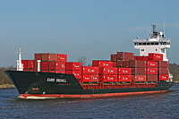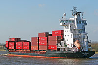 4. Schiff einer Serie typgleicher Feeder-Containerschiffe (23 Einheiten im Design "Peters 650" - 11 ohne und 12 mit Ladegeschirr), siehe auch (>Euro Storm<, >Conmar Elbe<), >Rumba<, >Samskip Endurance<, >NCL Haugesund< und >BCL Iwona< |