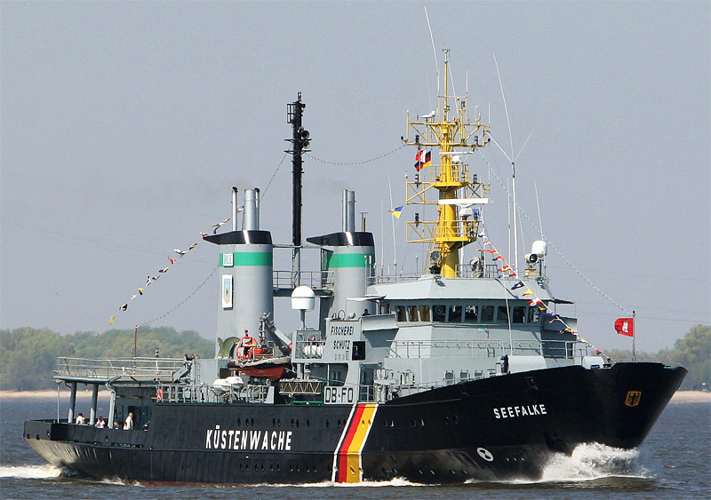 anlässlich des Hamburger Hafengeburtstages 2006 befindet sich der >Seefalke< auf dem Weg zur Einlaufparade