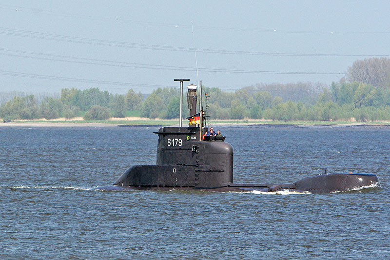 on the occasion of the Hamburg harbour birthday, the submarine of the German Marine >U 30<, is on the way to join the entering parade