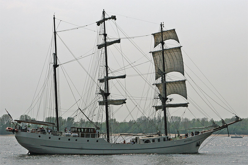 at the end of the outward bound parade of the Hamburg Harbour birthday, the >Artemis< is leaving Hamburg