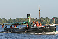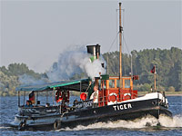 BRT: 65 ts. Der Auftraggeber dieses kleinen Hafenschleppers war die Altonaer Ewerführerei Jürgen Hinrich Steffen. Bis 1965 versah der TIGER im Hamburger Hafen seinen täglichen Dienst, der aus dem Schleppen und Bugsieren von Schuten oder kleinen Seeschiffen bestand. 1978 hat der "Museumshafen Oevelgönne e. V." aus Spendenmitteln das stillgelegte Schiff erworben. |