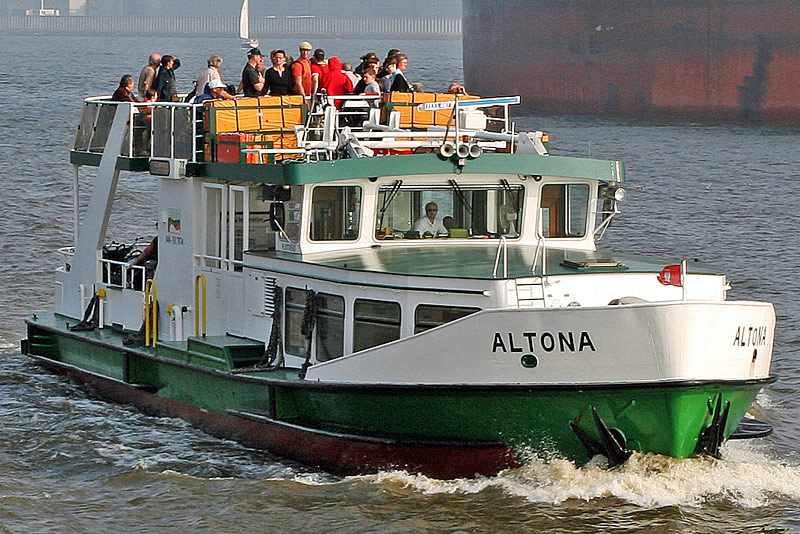 in Hamburg-Blankenese, den Fähranlager >Opn Bulln< anlaufend
