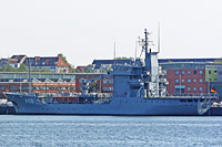 "Elbe" class multipurpose tender [AR] and 6th ship of type 404, PTG tender (6 vessels, also see >Elbe< and >Werra<), 1st corvette squadron in Warnemuende - main armament: 2x 27-mm AA rapid gun Rheinmetall MLG 27, 2x Stinger (Fliegerfaust) SAM positions - equipped with 1 crane of a lifting capacity of 13 ts |