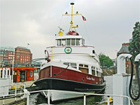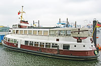 displacement: 266 m3, formerly HADAG "type ship" of type "IIIb". For those who are interested in more information about these types of ships, please visit: "www.elbdampfer-hamburg.de" (only in German language). |