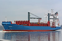 10. Schiff des sogenannten "Sietas Typ 168a" (11 Einheiten - keine deutsche Eis-Klasse, Open hatch-Containerschiff, Ladegeschirr; offene, überdachte Nock; weiße Fensterrahmen, 1 geschweißtes Deck), siehe auch >Maersk Flensburg<, >BF Esperanza<, >Coneste<, (>Mearsk Ferrol<, >BF Caroda<) und >NCL Averøy< - ausgestattet mit 2 Kranen á 45 ts Tragfähigkeit - siehe auch >OOCL Nevskiy< (Standard-Typ 168) und >Larissa< (Typ 168b) - das Schiff wurde 2020 in >NCL Ċlesund< und 2021 in >CT Daniel< umbenannt, siehe jeweils auch dort |
