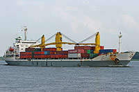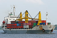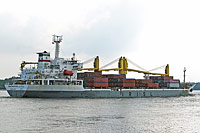 3rd ship of a series of identically constructed multi purpose dry cargo ships (5 vessels), also see >Sea Flower< - equipped with 4 cranes of a lifting capacity of 30 ts each |