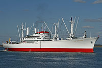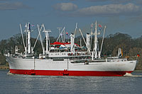 6. Schiff einer Serie baugleicher Frachter der sogenannten "Cap San"-Klasse (6 Einheiten) - ausgestattet mit 1 Ladebaum á 50 ts, 4 Ladebäumen á 15 ts, 12 Ladebäumen á 5 ts und 2 Kranen á 2 ts Tragfähigkeit |
