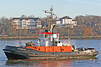 type ship of a series of identically constructed tugs (4 vessels), also see >Bugsier 20< and (>Wilhelmshaven<, >VB Wilhelmshaven<) |