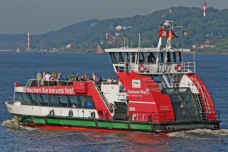 vor Hamburg-Finkenwerder, Fahrtrichtung elbabwärts zum Anleger Rüschpark