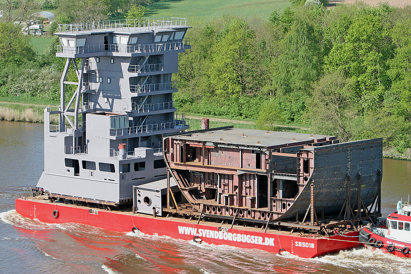 Bemerkung im Schleppverband mit Schleppern >Norsund< und >Baltsund< aus Gdingen/Polen kommend, Richtung J.J. Sietas in Cranz/Neuenfelde, einen Typ 168-Open-Top-Containerschiffsaufbau und ein Rumpfteil transportierend, siehe auch entsprechende Impressionen