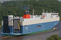 5th ship of a series of identically constructed car carriers (6 vessels in design "8245"), also see >Elbe Highway<, >Danube Highway<, >Seine Highway< and >Nordic Ace< - the ship sank December 5th 2012 following a collision with the container ship >CORVUS J< in the North Sea about 70 miles West of Rotterdam in position 51.51N, 02.54E. 13 crew were rescued with 6 missing and 5 dead. She was on passage from Zeebrugge for Kotka with 1,417 vehicles. Currently (since July 2015) she is being cut up, the refloated slices are transported for recycling at Vlaardingen (Netherlands) by Jansen Recycling. |