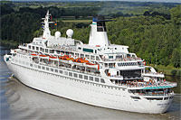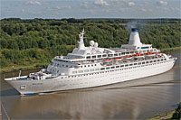 2. Schiff eines Paares baugleicher Kreuzfahrtschiffe - das Schiff wurde 2014 in >Amen< umbenannt - am 1. Dezember 2014 erreichte das Schiff Alang, Indien und wurde dort am 8. Dezember am Plot Nr. 120 auf Grund gesetzt, um von den G.K. Steel Ship Breakers, Bhavnagar verschrottet zu werden |