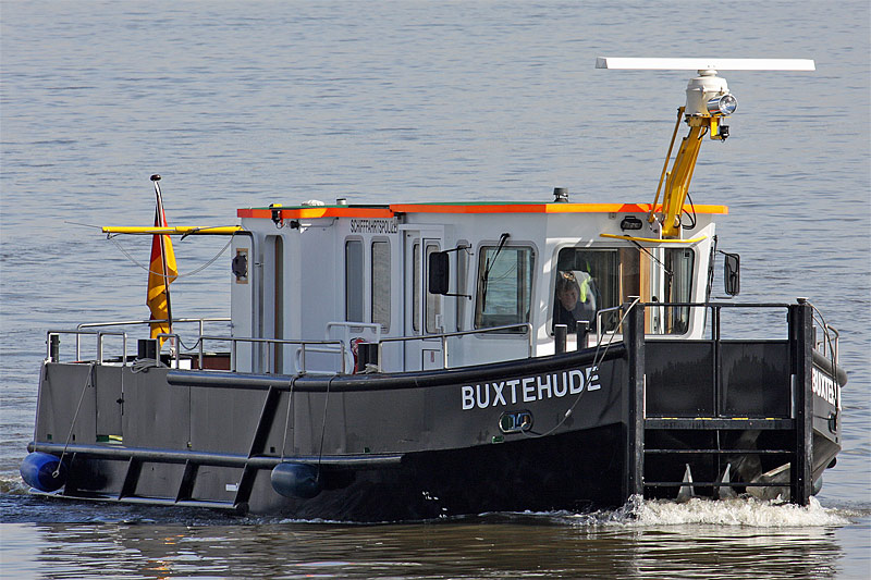 on the way to pass the River Lühe barrier, therefore the mast is turned down