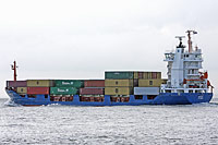 12th ship of a series of identically constructed feeder container ships of Sietas type 151 (23 vessels - German ice class E, in spite of given grain and bale data classified as container ship, closed, bridge wing, not supported on both sides, with sloping side windows, 1 welded deck) |