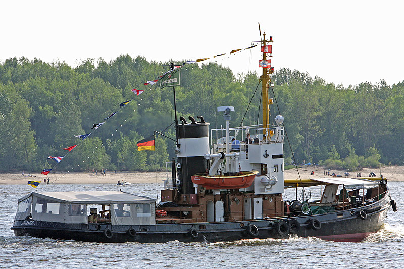 anlässlich des Hamburger Hafengeburtstages 2008 war der Schlepper >Goliath< zu Besuch in der Hansestadt und verlässt nun den Hafen