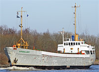 2nd? ship of a series of identically constructed coastal cargo liners (3? vessels), also see >Kormoran< - now with funnel sign, also see >Karina W< - in 2014 the ship was renamed >Voici Bernadette< - in June 2016 the Bolivian coaster was seized in Miami, FL, USA due to cocaine smuggling and had been detained since then - in June 2018 the ship was acquired by the "St. Lucie County Artificial Reef Program, Florida, USA" - on June 23rd 2019 the coaster was scuttled to become St. Lucie County’s newest artificial reef |