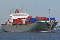 4th ship of a series of identically constructed container ships of the sonamed 'K'-Line "George Washington Bridge" class (4 vessels), also see >Henry Hudson Bridge< - on June 19th 2012 the ship arrived Jiangyin, P.R. China for demolition by Changjiang Shipbreaking Co. |