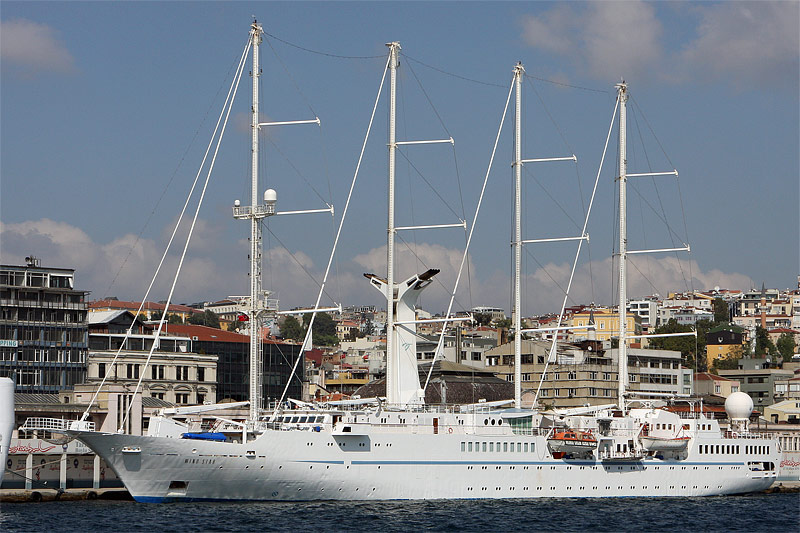 in Istanbul (Türkei), Galatasaray, bei Karaköy am Pier für Kreuzfahrtschiffe liegend