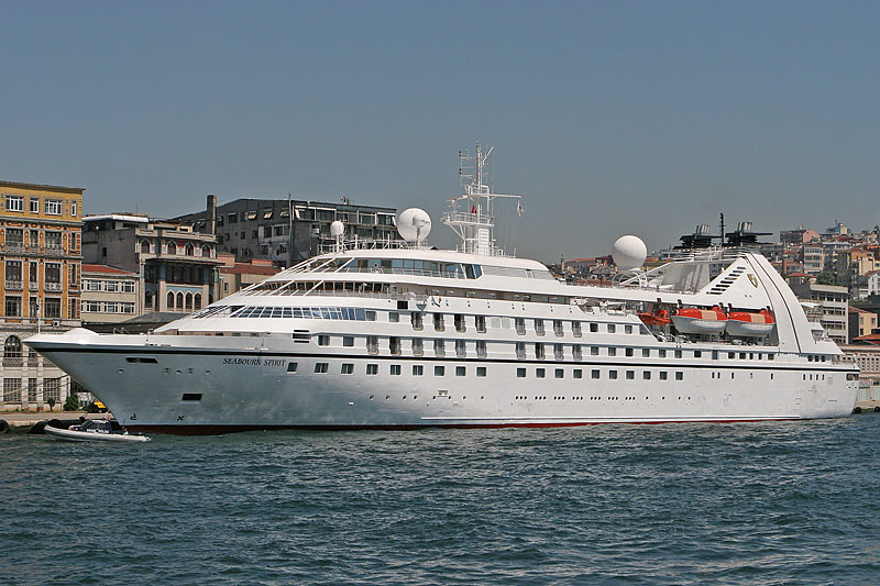 in Istanbul (Türkei), Galatasaray, bei Karaköy am Pier für Kreuzfahrtschiffe liegend