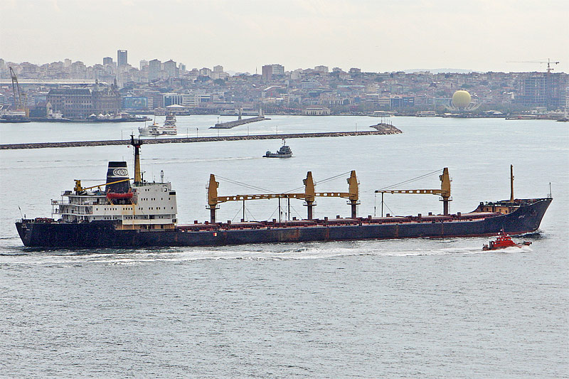 in Istanbul (Türkei), vor Sultanahmet, beim Verlassen des Bosporus, Fahrtrichtung Marmarameer