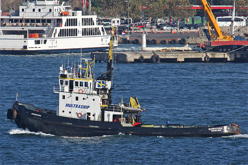 Istanbul (Turkey), near Eminönü, coming from the Sea of Marmara, entering the container harbour