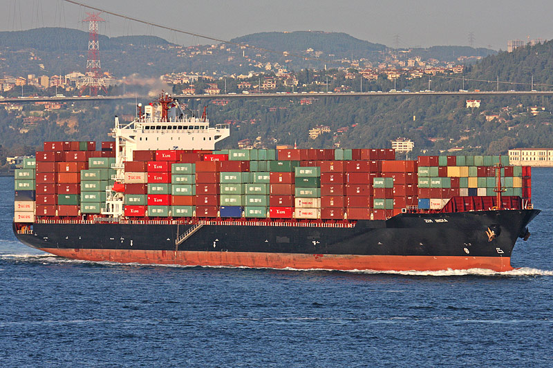 Örtlichkeit in Istanbul (Türkei), vor Eminönü, beim Verlassen des Bosporus, Fahrtrichtung Marmarameer