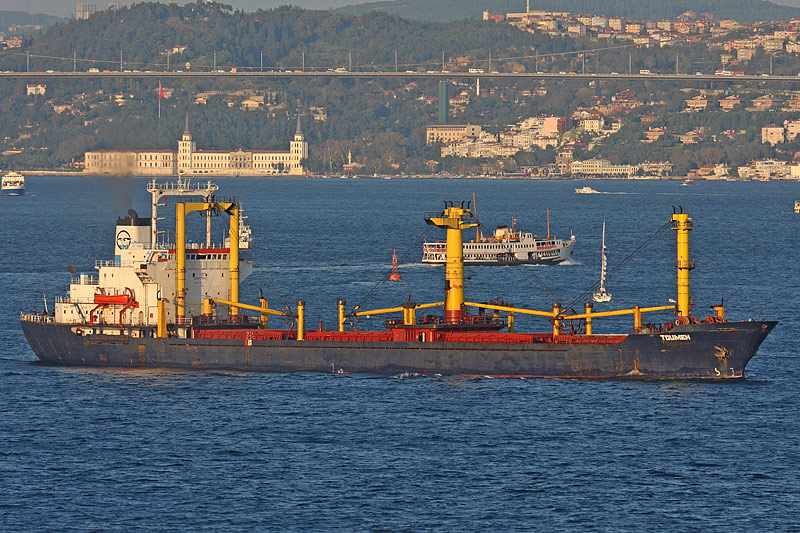 in Istanbul (Türkei), vor Eminönü, beim Verlassen des Bosporus, Fahrtrichtung Marmarameer