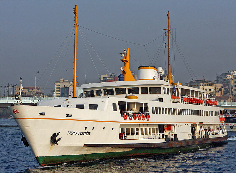 Örtlichkeit in Istanbul (Türkei), Eminönü, den Pier des Fährterminals anlaufend