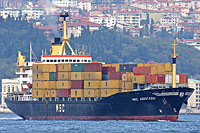 3. Schiff einer Serie baugleicher Schiffe (4 Einheiten) - das Schiff wurde 1978 bei der "Bremer Vulkan AG Schiffbau und Maschinenfabrik, Bremen, Bundesrepublik Deutschland" vom Mehrzweckfrachter zum Containerschiff umgebaut und dabei gleichzeitig verbreitert und um ein Cargosegment verlängert - am 21. August 2009 wurde das Schiff vor Alang auf Grund gesetzt, um von indischen Abwrackern verschrottet zu werden |