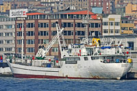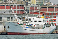 3rd ship of a series of almost identically constructed coastal cargo liners (12 vessels with a varying number of cranes), also see >Sarata< - equipped with 2 cranes of a lifting capacity of 5 ts each - on July 27th 2011 the ship was beached Aliaga for demolition by Turkish breakers |
