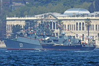 "Grisha-V" class corvette [FFL], project 1124M (originally 30 vessels) - main armament: 1x twin-rail SAM rocket launcher Osa-M (SA-N-4, 20 Gecko missiles), 2 shoulder launched Strela-3 SAM positions (SA-N-8, 20-24 Gremlin missiles), 1x 76.2-mm gun AK-176 DP, 1x 30-mm AA gun AK-630M gatling, 2x twin 533 mm torpedo tubes, 1x 12-round ASW rocket launcher RBU-6000 (48 RGB-60 rockets), up to 18 mines - as participator of the "Black Sea Partnership Exercise 2009" visiting Istanbul, Turkey |