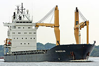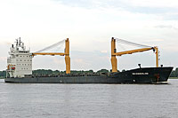 9. Schiff einer Serie baugleicher Mehrzweckfrachter des FSG-Typs "C-Box" oder "Compact-Box" (11 Einheiten), siehe auch >Rio Negro< und (>Niledutch Prestige<, >BSLE Genova<) - ausgestattet mit 2 Kranen á 60 ts Tragfähigkeit |