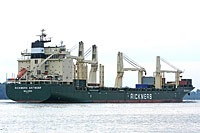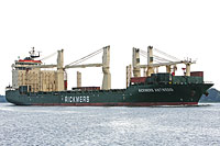 8. Schiff einer Serie baugleicher Mehrzweckfrachter des Typs "Superflex Heavy MPC" (1. Generation, 12 Einheiten), siehe auch >Rickmers Hamburg<, >Rickmers Tokyo<, >Rickmers Shanghai<, >Rickmers Jakarta< und >Rickmers Dalian< - ausgestattet mit 2 Kranen á 320 ts, 1 Kran á 100 ts und 1 Kran á 45 ts Tragfähigkeit |