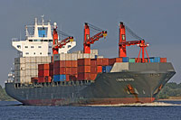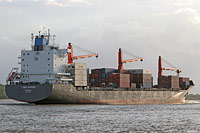 16. Schiff einer Serie typgleicher Containerschiffe vom Typ "MTW 2500", später "Baltic CS 2500" (35 Einheiten - 31 mit und 4 ohne Ladegeschirr - hier Typ "MTW 2500"), siehe auch (>Libra Buenos Aires<, >CMA CGM Bahia<), >Buxlink<, (>Iran Fars<, >Artenos<), >Simber<, >Frisia Lissabon<, >Libra Santa Catarina< und (>CSAV Santos<, >Frisia Rostock<) - ausgestattet mit 3 Kranen á 45 ts Tragfähigkeit |