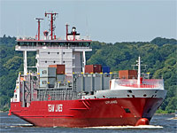 20th ship of a series of identically constructed feeder container ships of Sietas standard type 168 (26 vessels - German ice class E3, open hatch container ship, closed bridge wing, black window frames, 1 welded deck) - also see >Maersk Flensburg< (type 168a), >Larissa< (type 168b) and >Ida Rambow< (type 168V) - the upper border of the superstructure and the masts are now painted in red - in 2020 the ship was renamed >Helmut<, also see there |