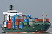 5th ship of a series of identically constructed feeder container ships of type "RW 700" (18 vessels - 4 with and 14 without cargo gear), also see >Mira J<, >Merwedijk<, >Veersedijk<, >Sirrah<, >Värmland<, (>Cepheus J<, >X-Press Monte Cervino<), >Atair J<, >Herm J< and >Rogaland< |