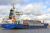 2. Schiff einer Serie baugleicher Feeder-Containerschiffe vom Sietas Typ 155b (3 Einheiten - deutsche Eis-Klasse E3, ursprünglich mit Ladegeschirr, 1 geschweißtes Deck), siehe auch >Husky Runner< und >Herm Kiepe< - das ursprüngliche Ladegeschirr ist nun demontiert - siehe auch >Maersk Rijeka< |