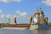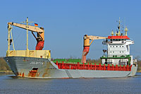 5. Schiff einer Serie nahezu baugleicher Mehrzweckfrachter vom Typ "Damen Combi Freighter 10500" (7 Einheiten), siehe auch >Xenia< - Rumpfhersteller: Yichang Shipyard, Yichang, Volksrepublik China (Nr. ?) ausgestattet mit 2 Kranen á 60 ts Tragfähigkeit |