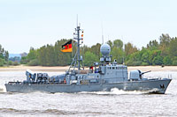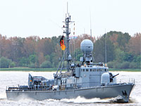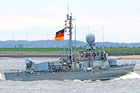 "Gepard" class guided-missile patrol craft [PTG] and 10th ship of type 143A (10 vessels, also see >Gepard<, >Puma>, >Hermelin<, >Frettchen< and >Dachs<) - 7th patrol craft squadron, Warnemuende - main armament: 4x MM 38 Exocet SSM, 2x 21-round CIWS SAM missile launcher "RAM" Mk 49, 1x 76-mm gun OTO Melara DP - the patrol craft was decommissioned on November 16th 2016 |