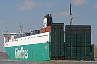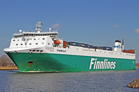 Typschiff einer Serie baugleicher Fähren (12 Einheiten), siehe auch >Finnmill<, (>Jutlandia Seaways<, >Jutlandia Sea<), >Finnbreeze<, >Finnsea<, >Finnsun< und >Finntide< - Ladungsmeter: 3.455, Trailerkapazität: 200 |