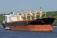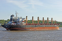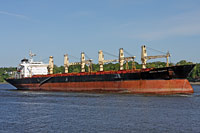 ausgestattet mit 6 Kranen á 25 ts Tragfähigkeit - das Schiff erreichte am 12. Juli 2012 Aliaga, Türkei, um von der Ege Celik Gemi Söküm A.S. verschrottet zu werden |