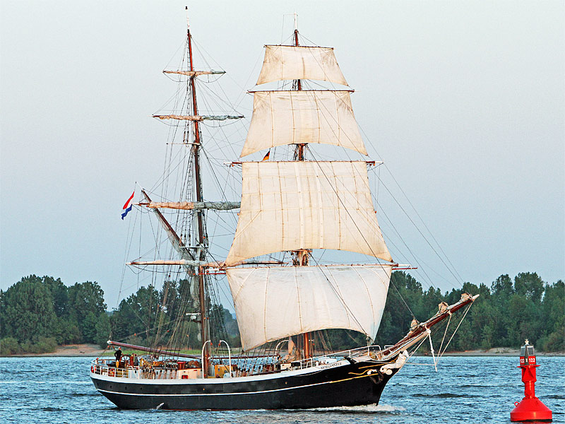 at the end of the outward bound parade of the Hamburg Harbour birthday 2011 >Morgenster< is leaving Hamburg