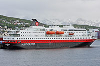 2nd ship of a series of identically constructed passenger / Ro-Ro cargo ships (3 vessels), also see >Kong Harald< and >Nordlys< - insulated cargo capacity: 880 m3, the given passenger capacity is the summary of 466 berths + day passengers |