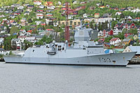 4th "Fridtjof Nansen" class frigate [FF] of type F 310 (Project 6088) (5 vessels, also see >HNoMS Otto Sverdrup<) - frigate squadron, Bergen - main armament: 8x NSM SSM, 1x 8-cell VLS SAM system Mk 41 (32 Sea Sparrow missiles), 1x 76-mm gun OTO Melara SuperRapid DP, 2x fixed twin 324 mm ASW torpedo tubes (Stingray torpedos) - on November 8th 2018, northeast of the "Store Oil & Gas Terminal" (island "Stura", about 50 km northwest of Bergen, Norway), the southbound frigate collided with the fully loaded, northbound crude oil tanker >Sola TS<, which had left the terminal shortly before. Due to the severe damage, the frigate sank almost completely over the next days and could not be raised until March 2019. Afterwards the wreck had been laid up at Haakonsvern Naval Base, near Bergen until January 2021 and was then towed to Hanøytangen (Hanøyna, Hordaland), where it arrived on February 8th 2021 for demolition by Westscrap Nord AS, Hanøytangen. |