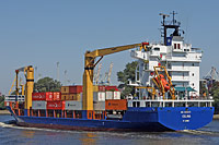 type ship of a series of identically constructed multi purpose dry cargo ships (4 vessels) - equipped with 2 cranes of a lifting capacity of 45 ts each - due to a navigational error of the captain the ship ran aground near Gangløy (Norway), south of Maløy, at the beginning of March 2012. It tore up the hull soil and water penetrated into the holds and the engine room. After a thorough investigation, the ship was declared a total loss and, later on, delivered on May 1st to the recycling company Smedegaarden A/S, Esbjerg, Denmark for demolition. |