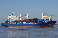 7th ship of a series of identically constructed container ships (9 vessels in design "8200"), also see >CSCL Barcelona<, >Bosun< and >Kota Perkasa< - equipped with 3 cranes of a lifting capacity of 45 ts each and 1 crane of 35 ts |