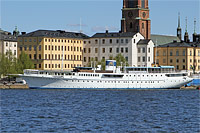 ursprünglich als Luxusyacht gebaut, 1981-1982 zu einem Hotel- und Restaurantschiff umgebaut mit festem Liegeplatz am Södra Riddarholmshamnen, Insel Riddarholmen, Stockholm |