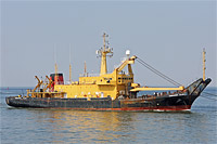 former mooring and salvage vessel - at the date of photographing the ship was dragged to Poland for repair and modification at EPG Shipyard of Gdynia - in 2013 the ship was converted into a geophysical survey vessel |