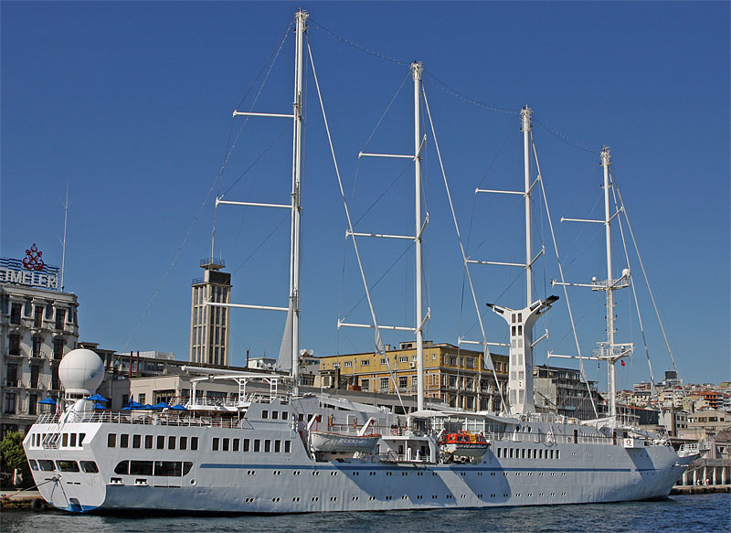 in Istanbul (Türkei), Galatasaray, bei Karaköy am Pier für Kreuzfahrtschiffe liegend